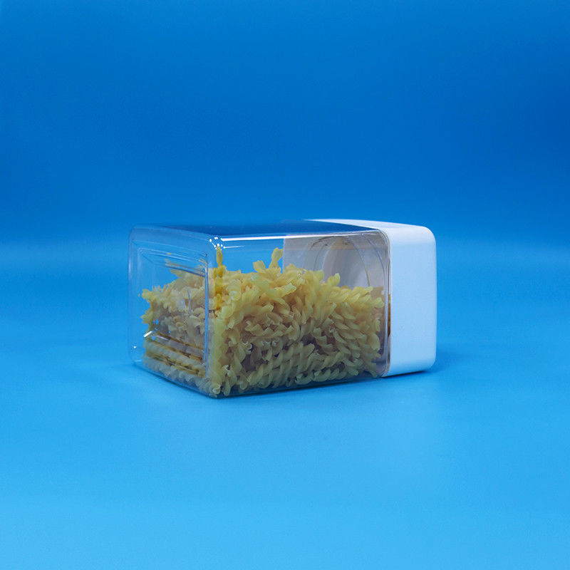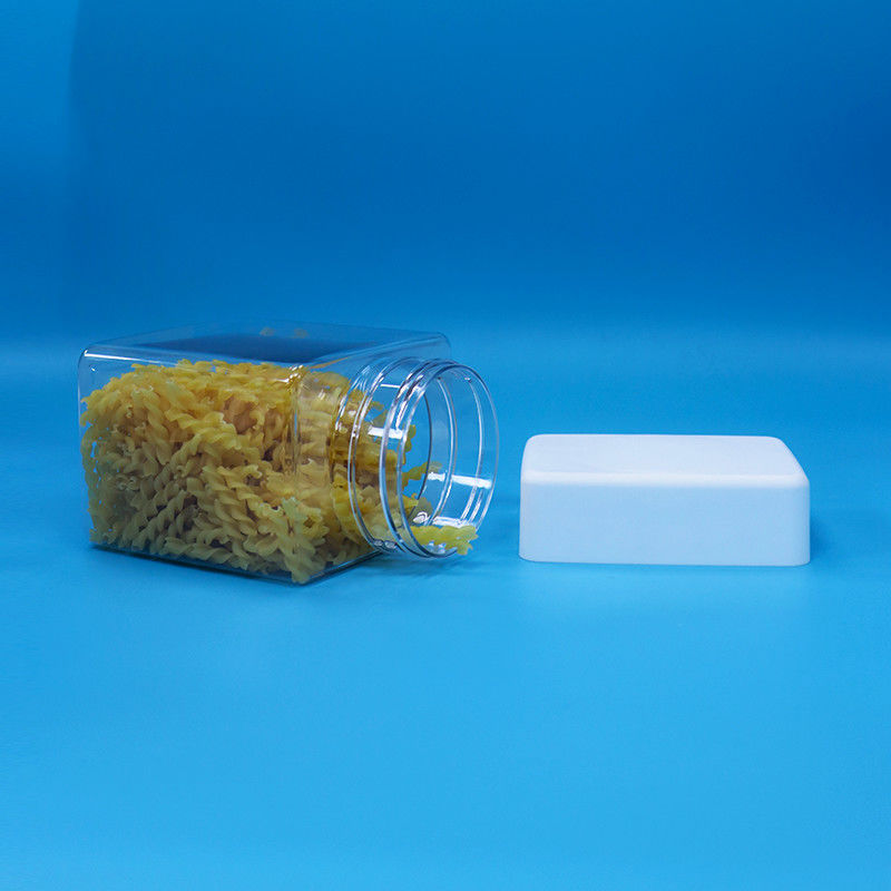 ΠΕΤ Γλυκά Σνακ Πλαστικό Τροφίμων Διαφάνεια τετραγωνικά βάζα Στροφή Πάνω Λευκά Καπάκια