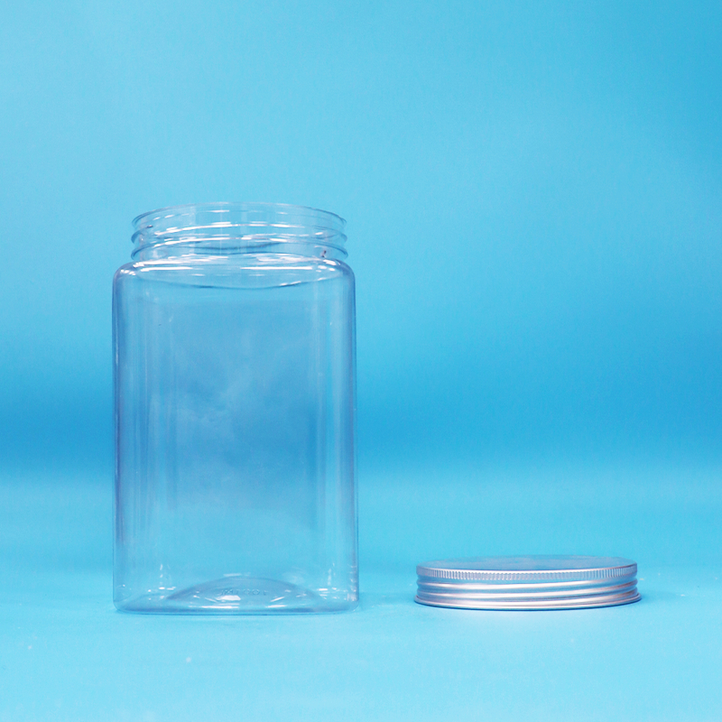 Δωρεάν από BPA Τετράγωνο Διαφανές Πλαστικό PET Δοχείο για Ζυμαρικά και Καραμέλες και Βιδωτό Καπάκι Αλουμινίου