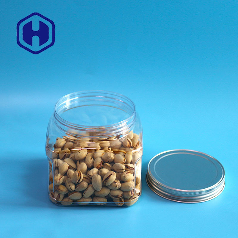 Αυτό είναι τετραγωνικό βάζο τροφίμων της PET πιασιμάτων πλαστικό με το καπάκι αργιλίου που αφότου γεμίσατε τα προϊόντα μπισκότων των δυτικών ανακαρδίων στα δοχεία, το αλουμίνιο EOE (εύκολες ανοικτές άκρες)/την ανάγκη καπακιών σημείου εισόδου (φλούδα από τις άκρες) ή καπακιών λευκοσιδήρου η σφραγίζοντας μηχανή για να σφραγίσετε το καπάκι, παρέχουμε τη σφραγίζοντας μηχανή αντιστοιχιών για τους πελάτες επίσης εάν ανάγκη. Προσφέρουμε σε εκείνο το πιάσιμο τα πλαστικά τρόφιμα της PET τετραγωνικό βάζο με το καπάκι αργιλίου που θα μπορούσε να κρατήσει για τα προϊόντα ικανότητας νερού 1000ml στα δοχεία, και αυτό το τετραγωνικό βάζο τροφίμων της PET πιασιμάτων πλαστικό με το καπάκι αργιλίου είναι απόδειξη διαρροών και 100% αεροστεγείς.