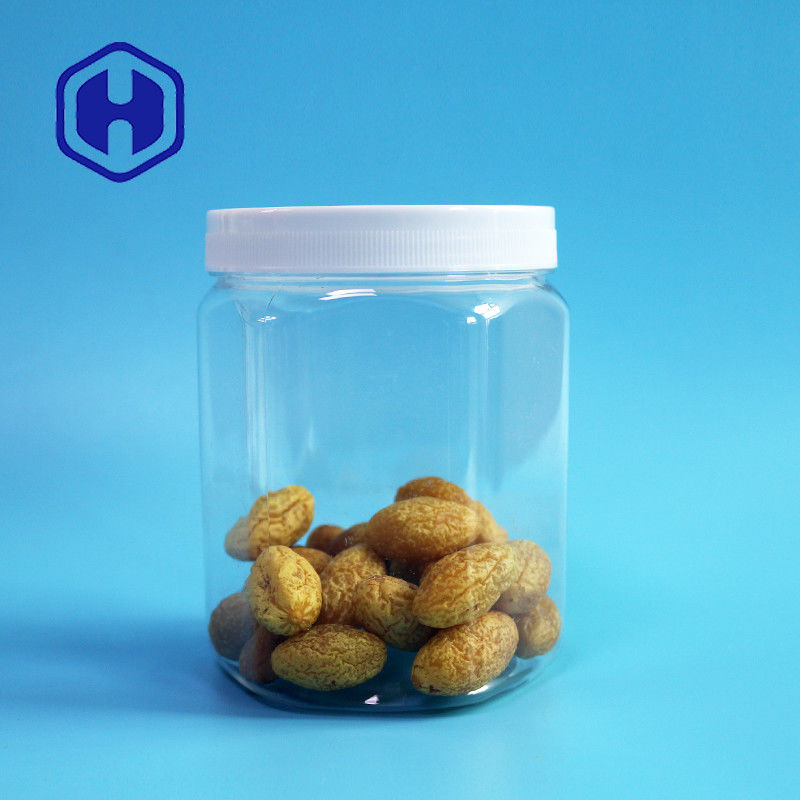 Φτηνό 630ml εξαγωνικό διαφανές ευρύ χονδρικό εμπόριο βάζων της PET στοματικών μπισκότων πλαστικό