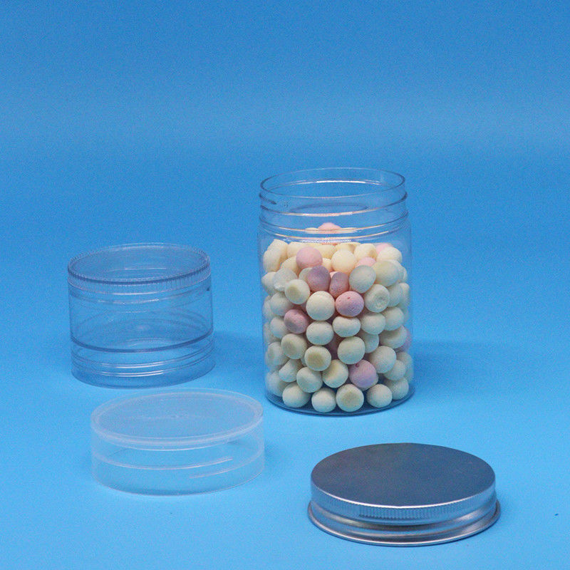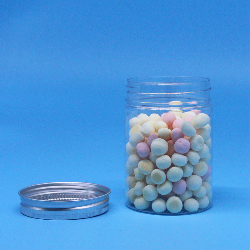 Άδειο PET Τροφίμων Κύλινδρο Στρογγυλό Τροφίμων Καραμέλες Διαφανές Βάζο Στρογγυλοποιημένα επίπεδα καπάκια