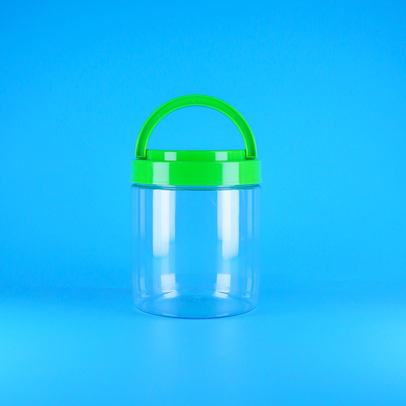Σφραγιζόμενο πλαστικό PET διαφανές στρογγυλό βάζο με καπάκι για φυστικοβούτυρο, με λαβή και βίδα